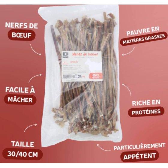 Le nerf d'agneau est plus fin que celui de boeuf, il sera adapté également aux chiots et petits chiens.