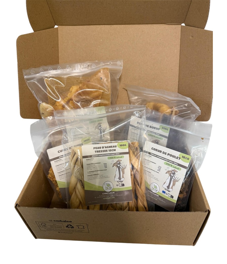 La Box du mois permet à votre chien de découvrir de nouvelles saveurs et de refaire votre stock de mâchouilles sans avoir besoin de réfléchir, avec des produits de qualité, 100% naturels, sans additifs ni conservateur !