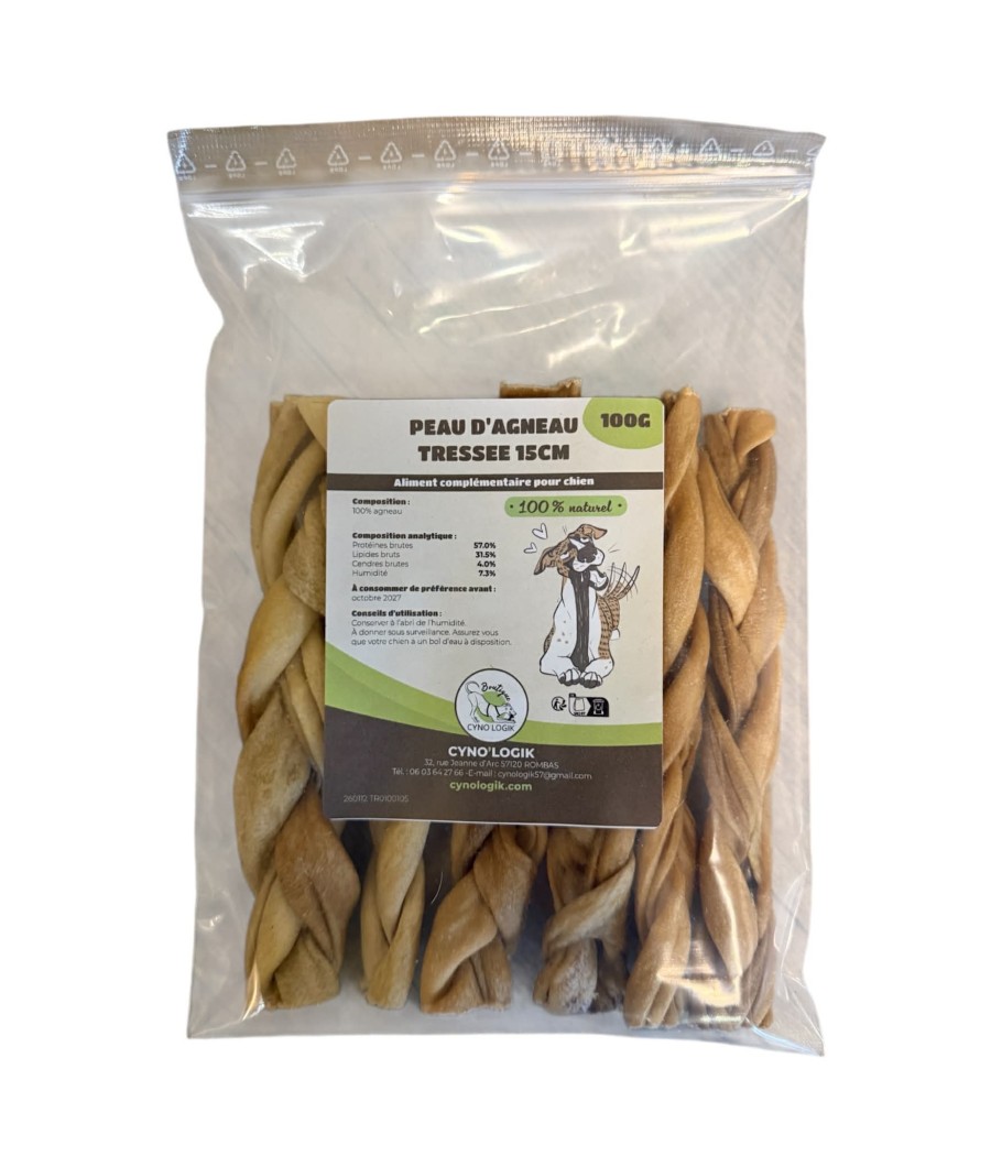 🐑 Des tresses de peau d'agneau 100g : une friandise dont la forme tressée apporte du temps de mastication !