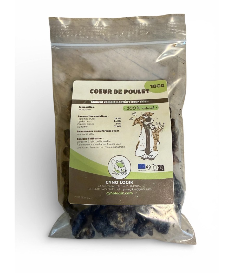 🐓 Des coeurs de poulet séchés 100g : si votre chien n'a jamais gouté, il vous en redemandera ! Une friandise vraiment tres gourmande et légèrement croustillante.