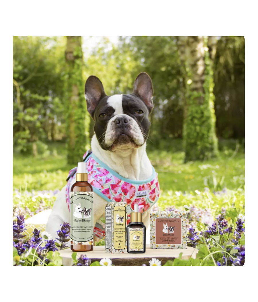 Tous les ingrédients ont été soigneusement étudiés et sélectionnés en fonction de leurs qualités et de leurs propriétés pour respecter la peau des chiens. Ils sont tous adaptés aux chiens et non toxiques !
